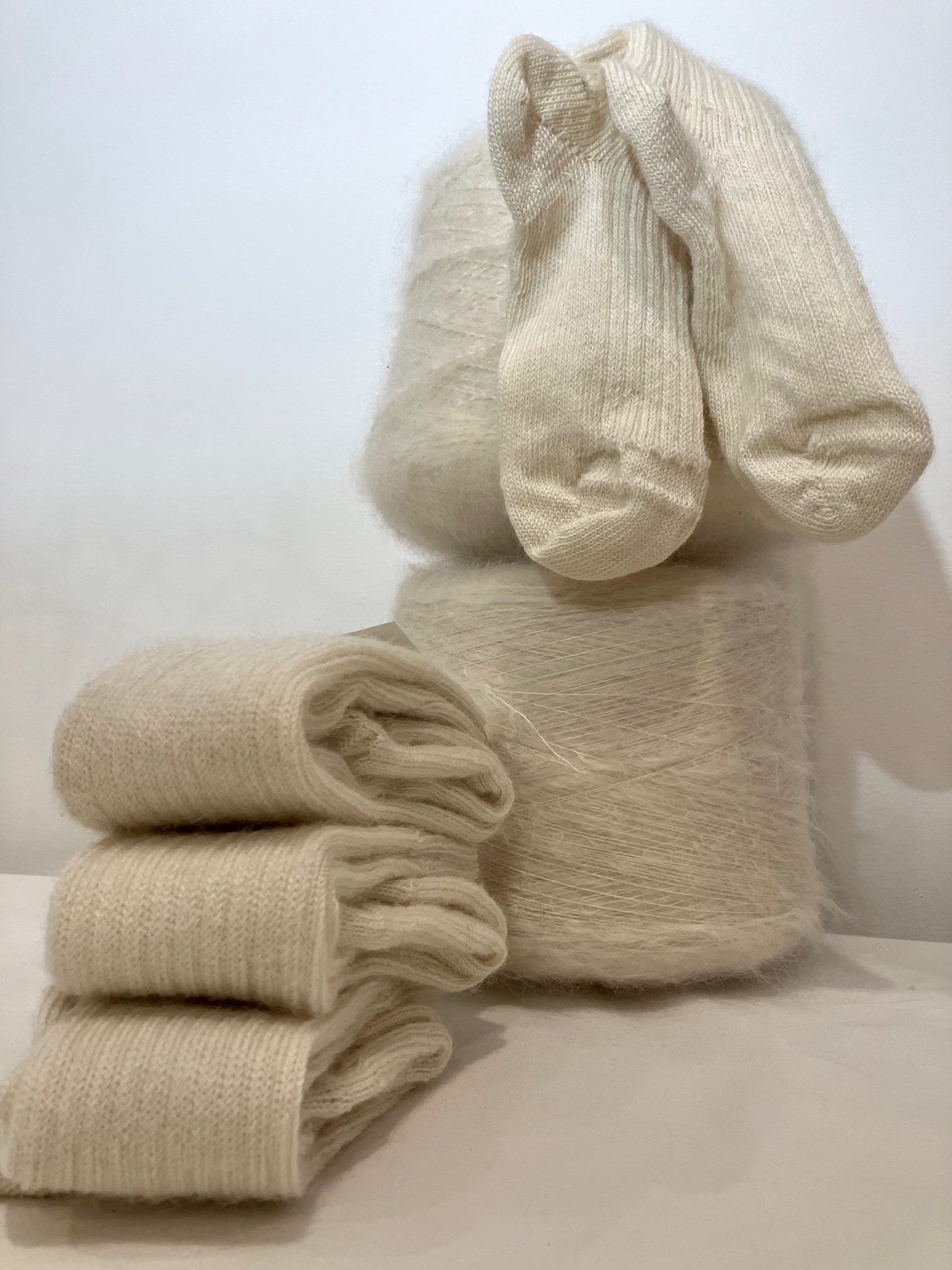 Chaussettes composées de 80% de mohair, 19% de polyamide et 1% de lycra.
