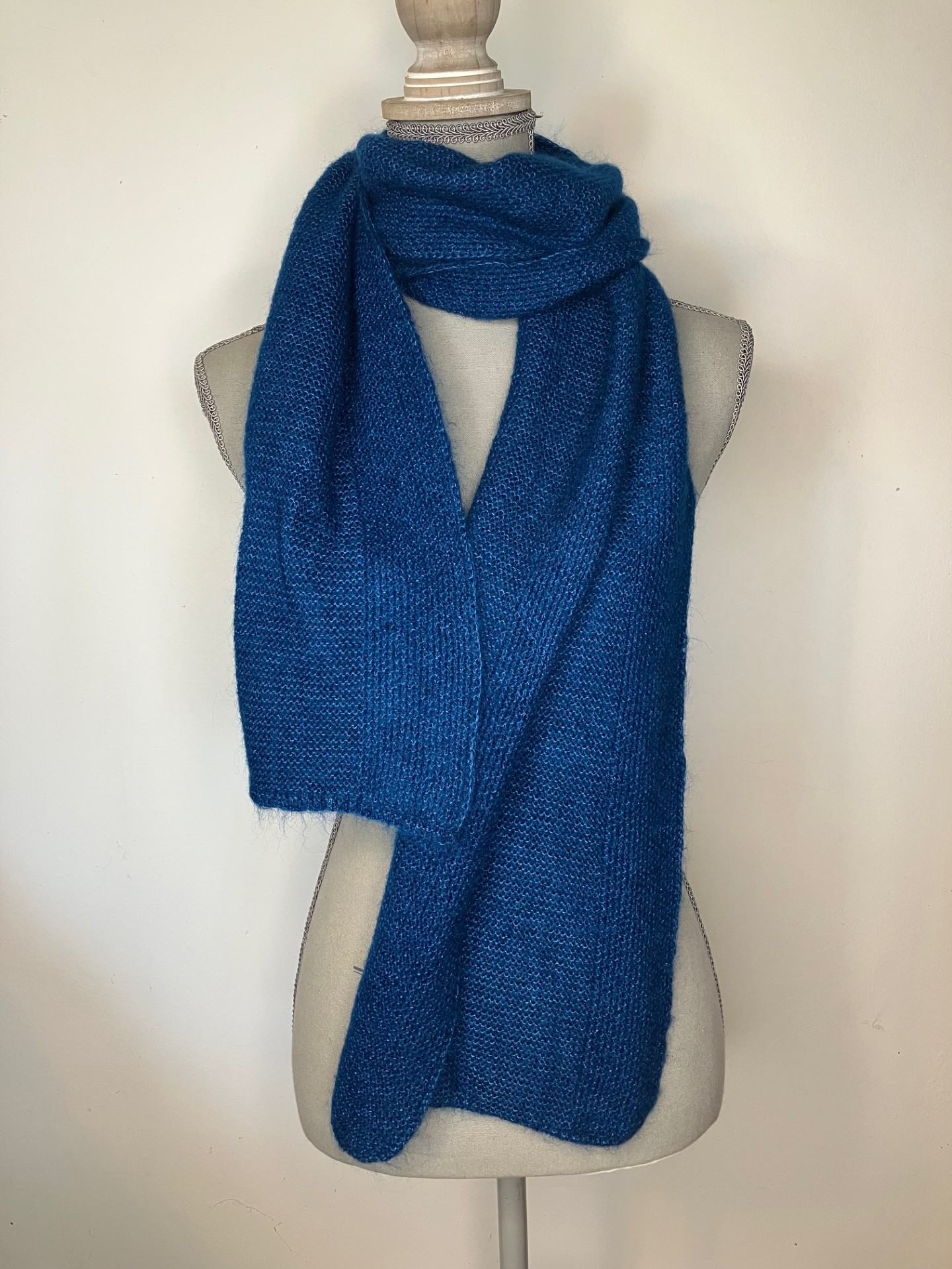 Composée de 55% de mohair et 45% de soie, cette écharpe est tricotée chez notre artisan tricoteur à Castres.